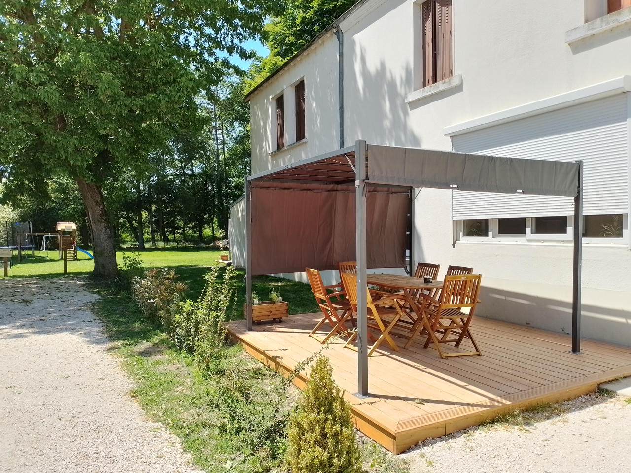 En séjournant chez nous, vous profitez également de tous les équipements extérieurs : aire de jeux pour enfants, terrain de pétanque, buts de football et grand parc arboré. Un cadre idéal pour conjuguer détente et moments conviviaux en famille.